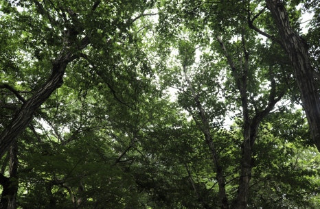 고성 장산숲은 우리나라 온대 남부지역에서 주로 자라는 느티나무, 서어나무, 소태나무 등