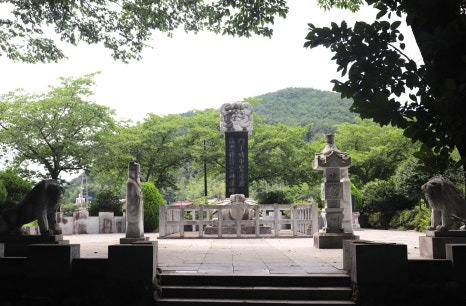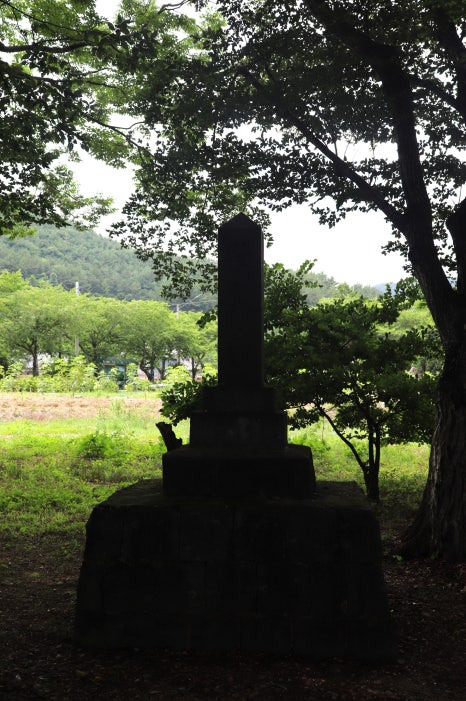 죽사정 앞에 있는 오래된 석탑 부재와 경모대(敬慕臺)