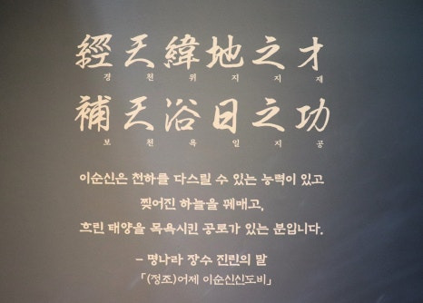 명나라 장수 진린이 이순신 장군을 평가한 문구 '경천위지지세 보천욕일지공'