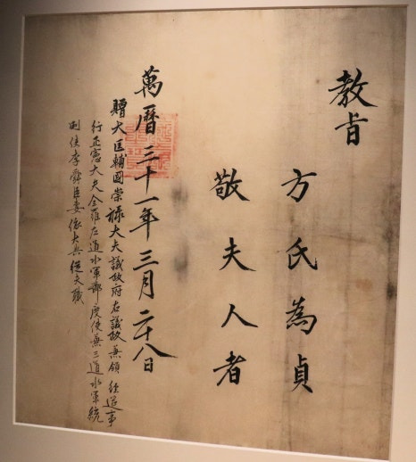 이순신의 부인에게 작위를 내린 '상주 방씨 정경부인 교지(보물)'과