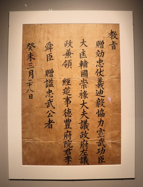 이순신에게 충무공 시호를 내린 '충무공 증시교지(보물)'
