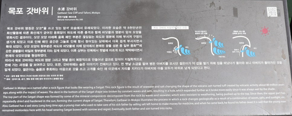 목포 갓바위는 '삿갓'을 쓰고 있는 모습에서 유래되었는데 이러한 모습은 약 8천만년 전