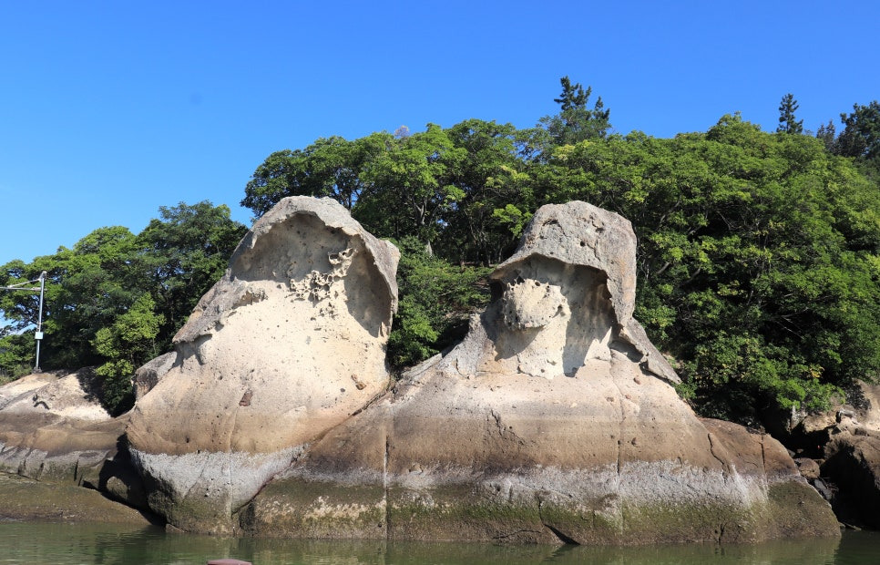 화산활동에 따른 화산재가 굳은 응회암이 파도에 의한 충격과 함께 바닷물의 염분이