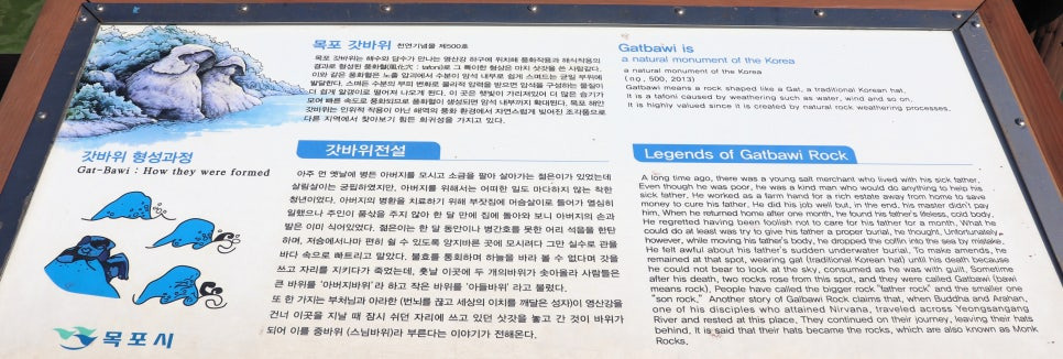 목포 갓바위는 어떤 도승이 영산강을 가로질러 나불도 방향으로 가던 도중에 잠시 쉬면서
